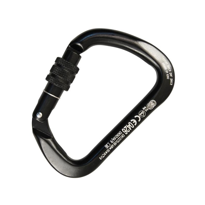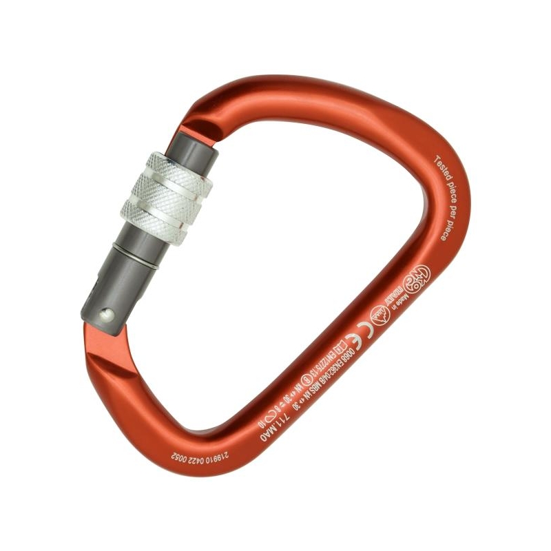 Karabiner of aluminium with secure screw. The series X-Large is designed to offer a wide-open aperture of the trigger and a high breaking load. The way of D special prevents the rotation of the carabiner and allows you to further distribute the load along the major axis.