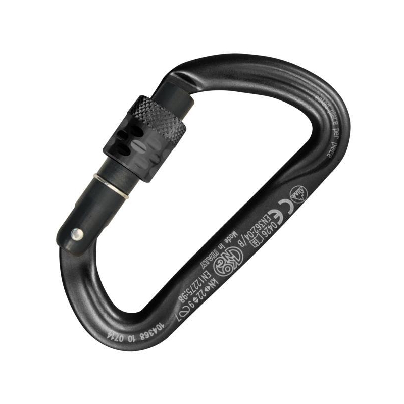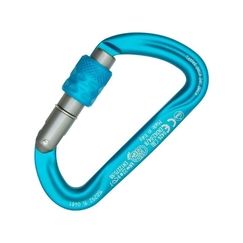 Carabiner dedicated to anyone looking for the maximum lightness with the minimum space. Designed to promote the passage of the rope and to ensure the correct positioning of the retention devices. The contact surfaces are wider to reduce wear and tear and the bend angle of the string during the slide. The form of D transfers the bulk of the load to the main axis of the carabiner, which is the most resistant. In addition, the asymmetrical shape is ideal for retention systems or abseiling. The secure screw allows to obtain a greater security of closing of the trigger and makes it suitable even for jobs in the professional field. Suitable for use in a meeting.