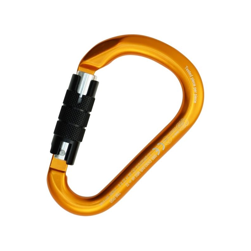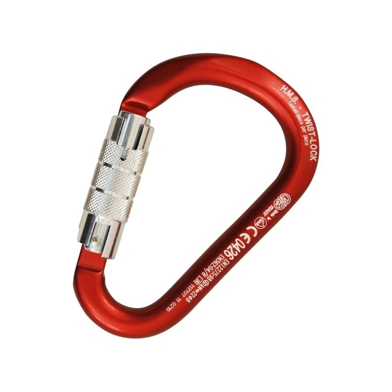 Aluminium connector with secure Twist Lock 2 movements and system Keylock. The classic shape with a wide base HMS pear-shaped makes it suitable to hold nudo ballestrinque or dynamic. Possibility of use with all the systems of anchorage and retention, both in a meeting as attached to the harness. The auto insurance makes it suitable even for professional uses.