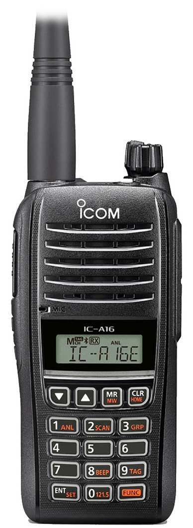 – IC-A16E#12: Portable air band VHF, IP67, 6 W, with Bluetooth.