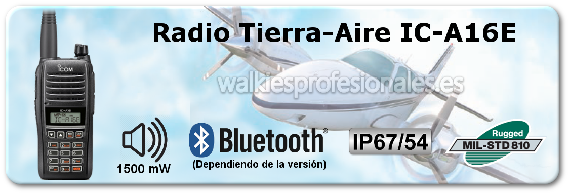 – IC-A16E#22: Portable air band VHF, IP67, 6 W.