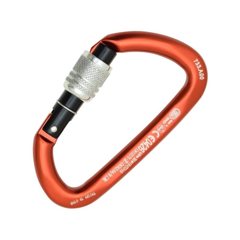 Carabiner lightweight aluminium and high freight, insurance and screw system Keylock. The form of D transfers the bulk of the load to the main axis of the carabiner, which is the most resistant. In addition, the asymmetrical shape is ideal for retention systems. The secure screw allows to obtain a greater security of closing of the trigger and makes it suitable even for jobs in the professional field. Suitable for use in a meeting.