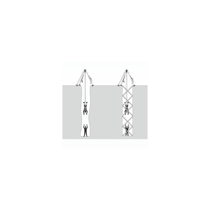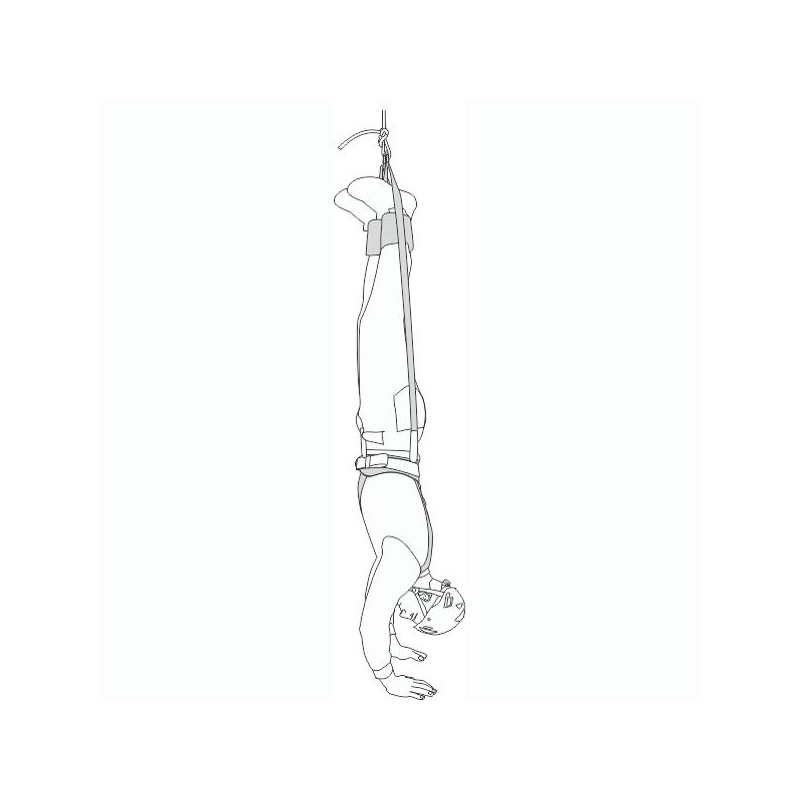 Special harness with ankle braces that allows you to downs in a position overturned to use in tight spaces or galleries (wells, silos, etc)