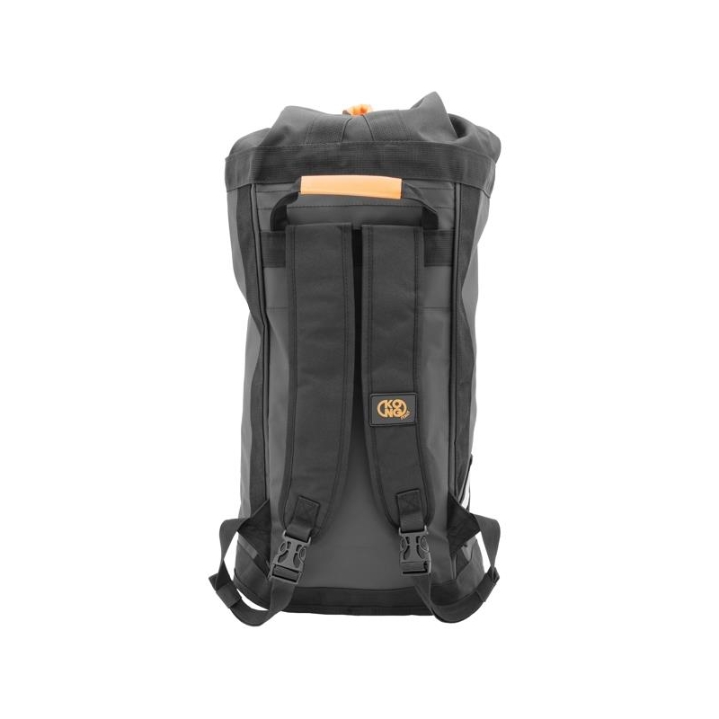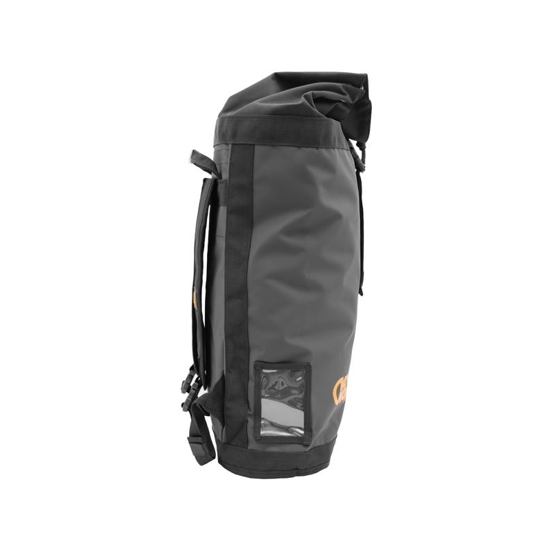 Backpack for the transport of ropes and tools and equipped with comfortable padded shoulder straps and hook to the suspension.