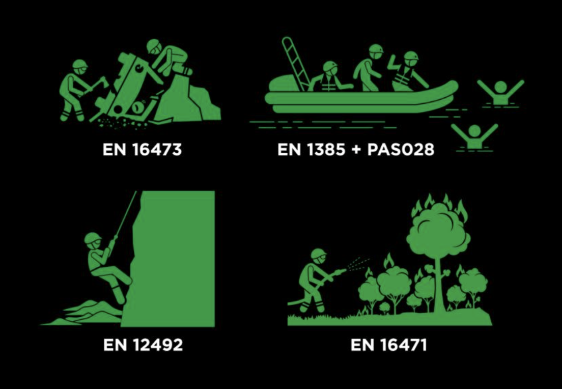 Probado y certificado para la lucha contra incendios forestales, rescate técnico, búsqueda y rescate urbanos, escalada y rescate acuático.