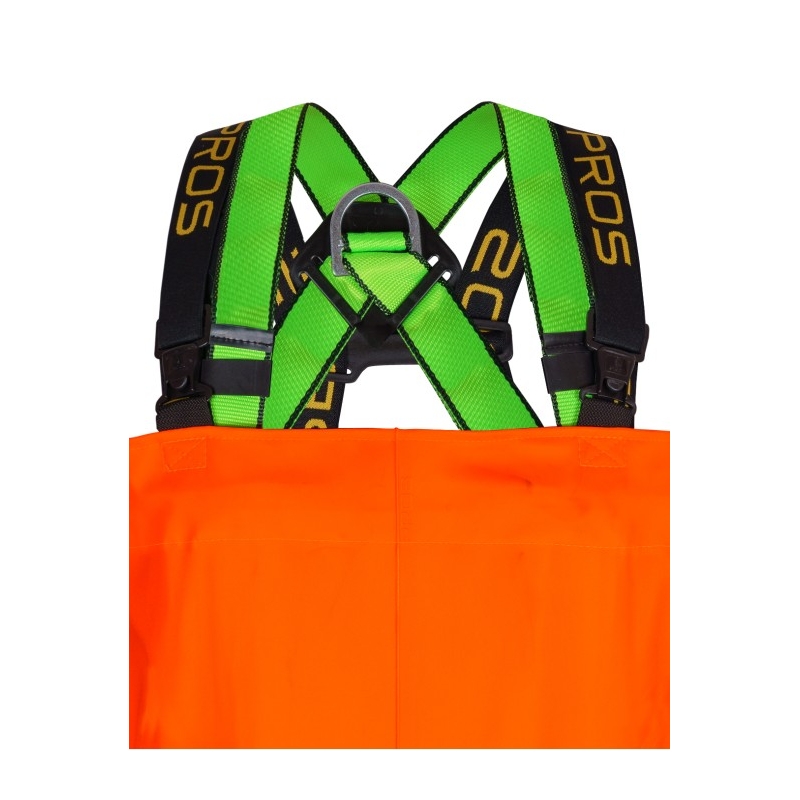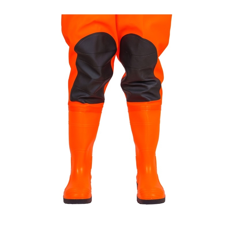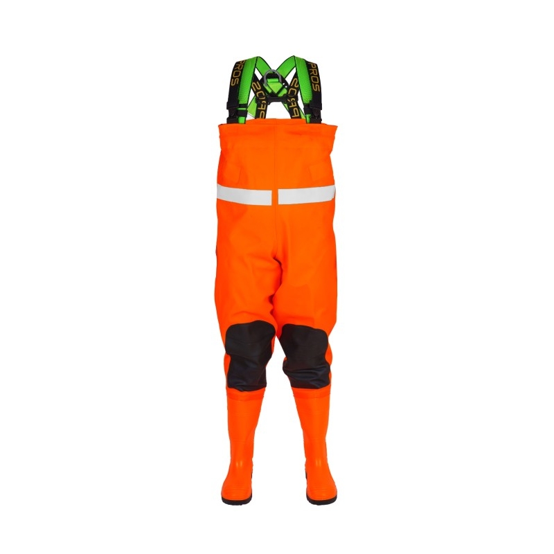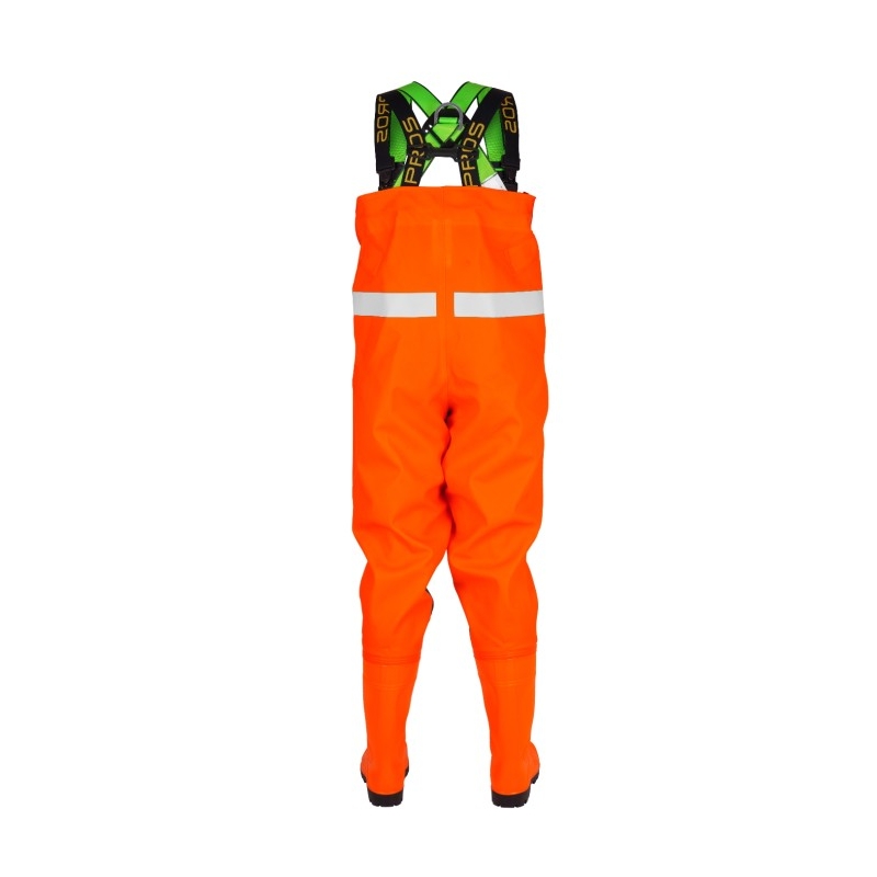 Vadeadores especializados utilizados en condiciones climáticas y de terreno difíciles. Fabricado con material recubierto de PVC de la más alta calidad. Están equipados con arneses de seguridad que permiten sujetar al empleado a un teleférico o asegurarlo. La visibilidad del usuario aumenta con cintas reflectantes y fosforescentes.