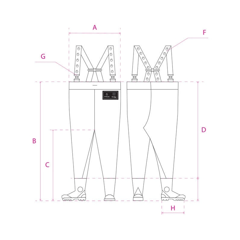 Los vadeadores han sido equipados con botas protectoras de clase S5 SRC. Producto disponible bajo pedido.