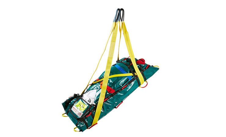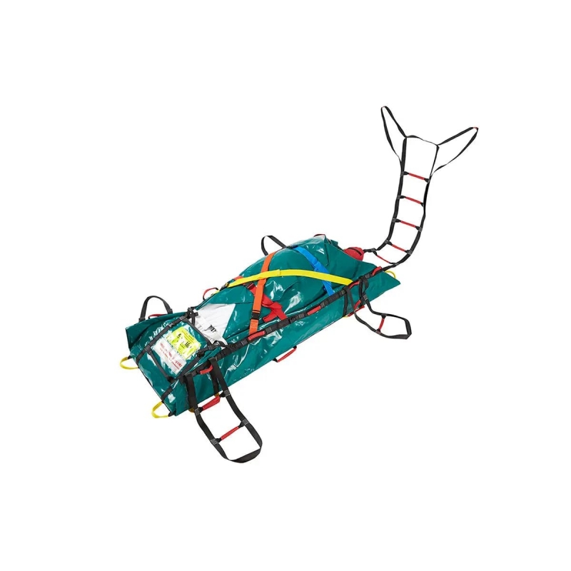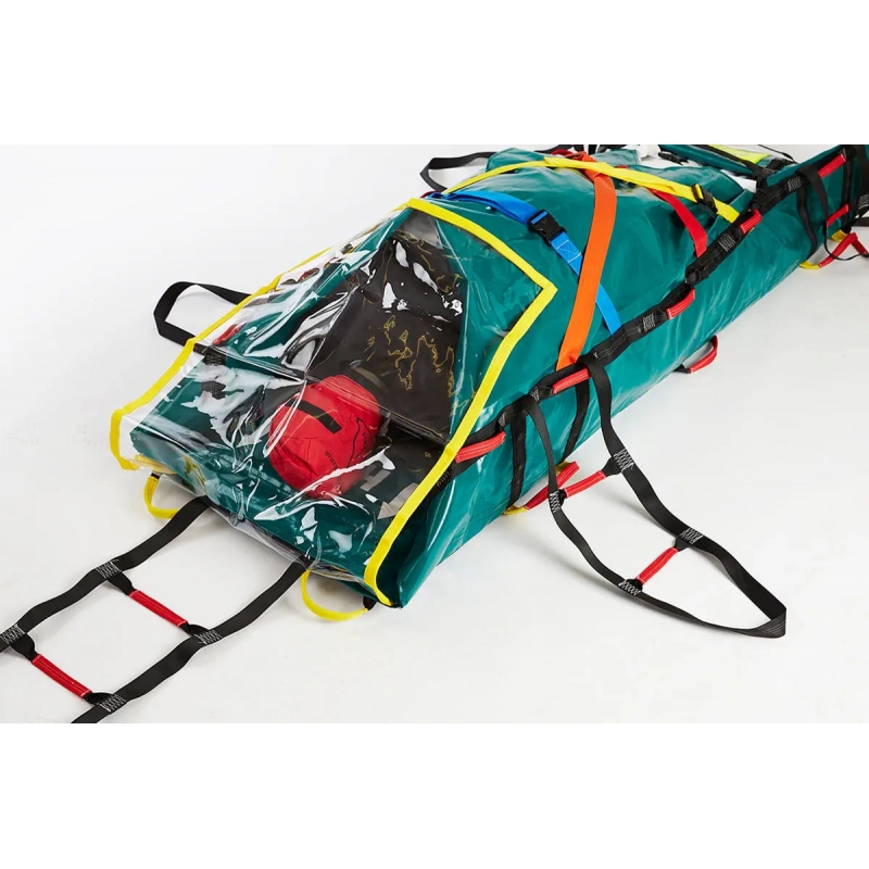 Otras características incluyen asas y puntos de anclaje de posicionamiento bajo y alto codificados por colores, asas de escalera adicionales (sueltas), que pueden fijarse a los numerosos puntos de anclaje, almohada interna y una sábana deslizante para facilitar la transferencia.