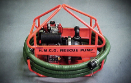 Los helicópteros de búsqueda y rescate de la Guardia Costera del Reino Unido y España utilizan una motobomba de izado, diseñada con un marco liviano y portátil que se puede usar para salvamento, extinción de incendios y bombeo general.