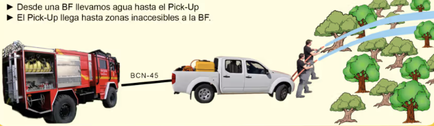 Los MEGAFOC son totalmente compatibles con los camiones de extinción tanto pesados como urbanos y forestales, muchos de nuestros clientes ya disponen de lanzas, mangueras, filtros, racores etc.