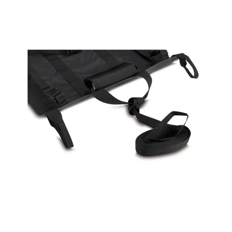 Es fácil de transportar y desplegar gracias a que la PAX Camilla Enrollable Evac – táctica es muy compacta. En caso de emergencia, la camilla también puede ser manejada por una sola persona. La camilla puede ser remolcada utilizando la eslinga de remolque de 3 metros. Para ello, la base está reforzada con una placa de LDPE. La eslinga de remolque se guarda en una pequeña bolsa en el extremo de la cabeza para ahorrar espacio.