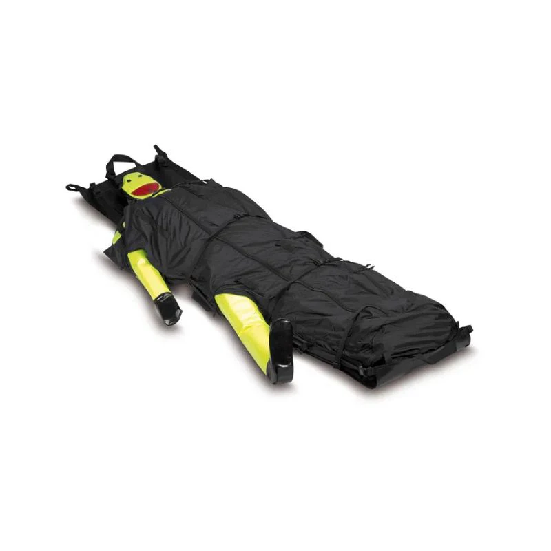 Las hebillas y la cubierta aseguran un transporte seguro. Varias cremalleras permiten el acceso al paciente desde diferentes lados. Las cremalleras laterales tienen 4 deslizadores para crear puntos de acceso individualizados.
