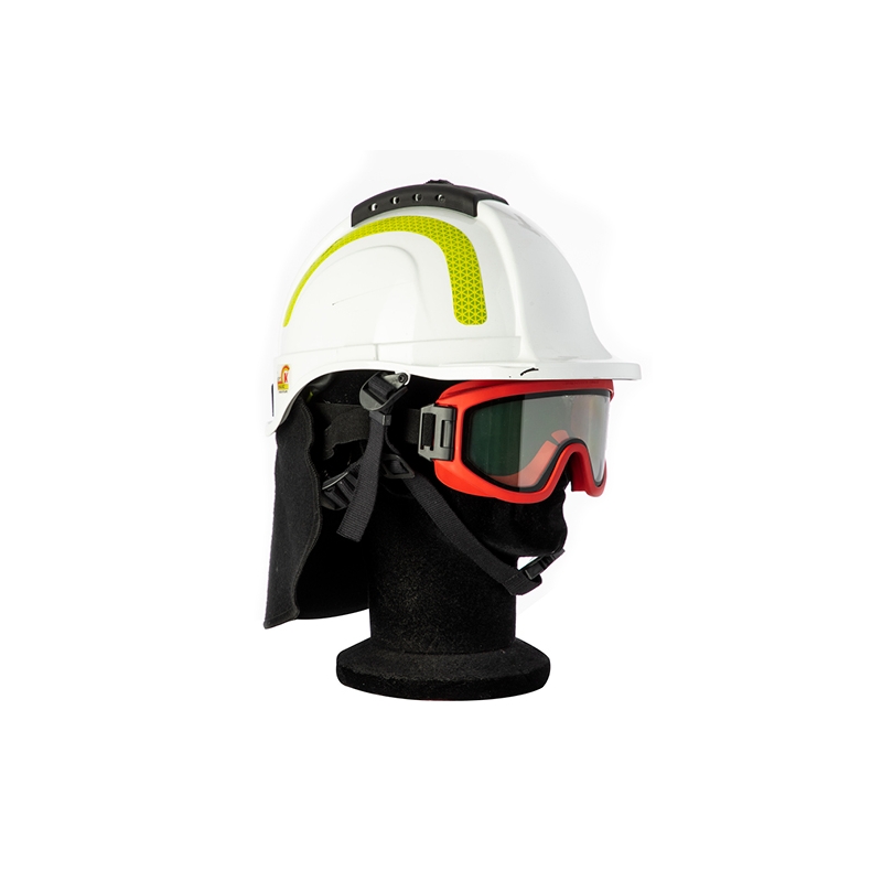 Los materiales utilizados en la fabricación de este casco ofrecen la máxima protección contra daños mecánicos causados por caída de objetos, proyección de astillas, aislamiento eléctrico de hasta 440 V, contacto con fuego, metales fundidos y productos químicos.