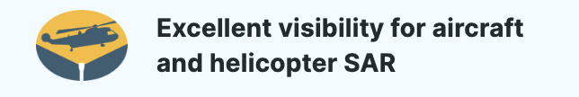 Excelente visibilidad para SAR de aeronaves y helicópteros.