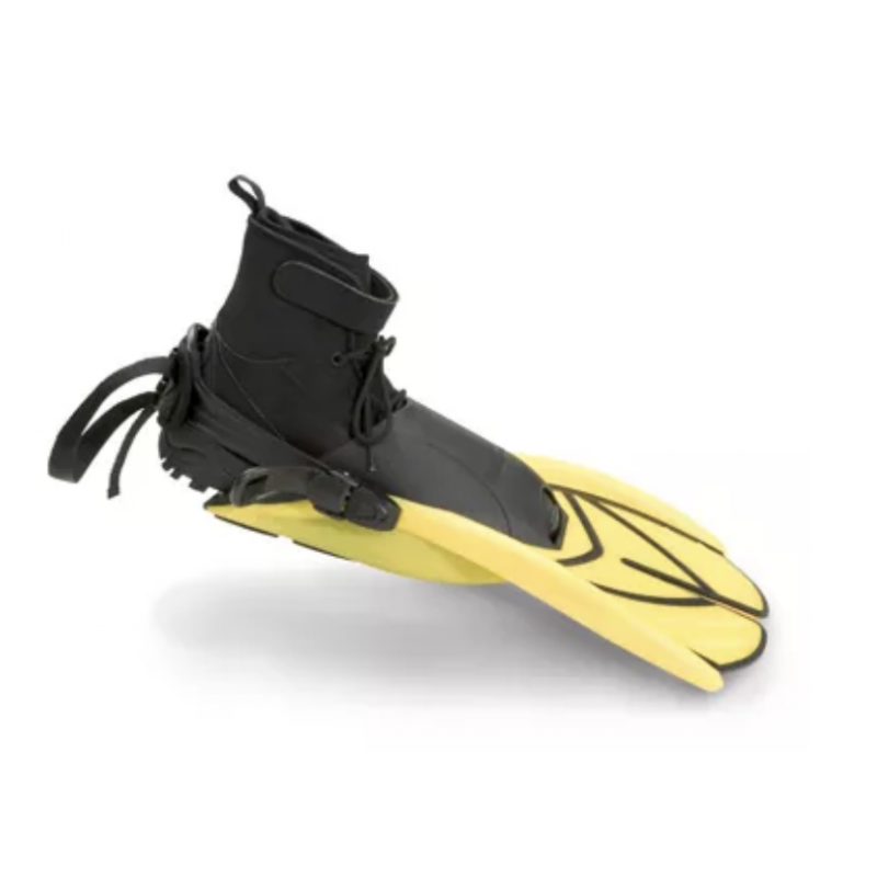 El bolsillo suave para el pie con almohadilla para el talón brinda una excelente comodidad y está diseñado para adaptarse a la mayoría de las botas de buceo/rescate de suela moldeada y de neopreno grandes (incluidas las botas integradas en los trajes de rescate en hielo).