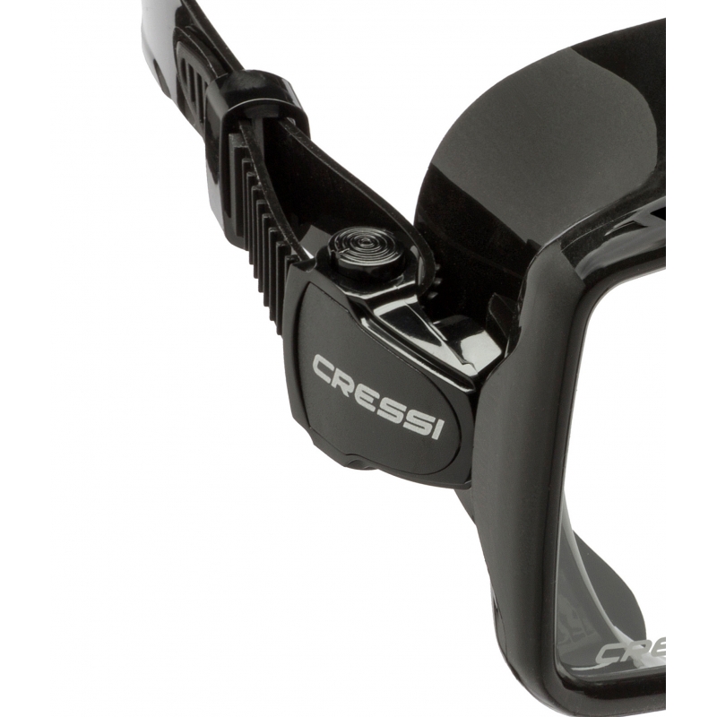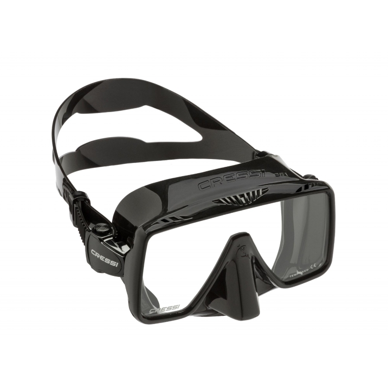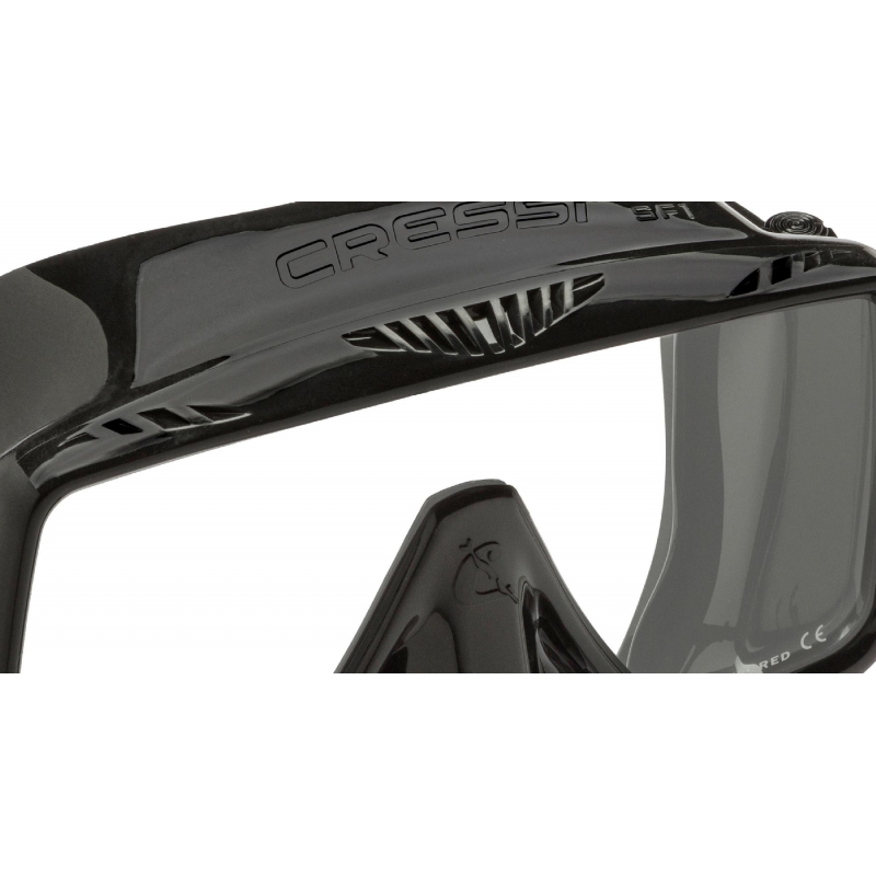 Máscara monocristal Frameless panorámica de gran visibilidad | Zonas críticas en toda máscara Frameless (zona frontal y parte superior de la nariz) reforzadas para dotar a la máscara de una buena resistencia estructural | Excepcionales acabados con pulido de la matriz efecto espejo | Facial en silicona con dimensiones calibradas para facciones medias y amplias | Anclaje de las hebillas vinculado al plano del cristal | Hebillas regulables pivotantes de regulación instantánea | Volumen interno: 135 cm3 | Dimensiones montura: 165 x 80 mm | Peso (con tira incluida): 200 g