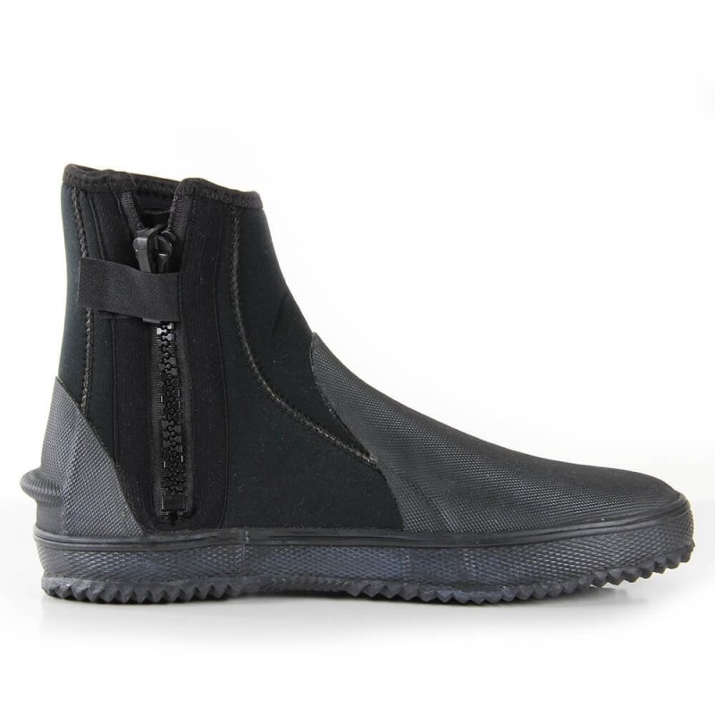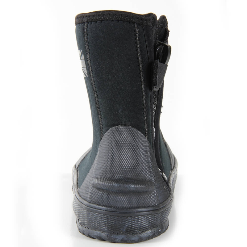Las botas de neopreno negras cuentan con una cremallera lateral YKK duradera y una suela de goma antideslizante resistente. También tienen protección adicional alrededor del talón y la puntera.