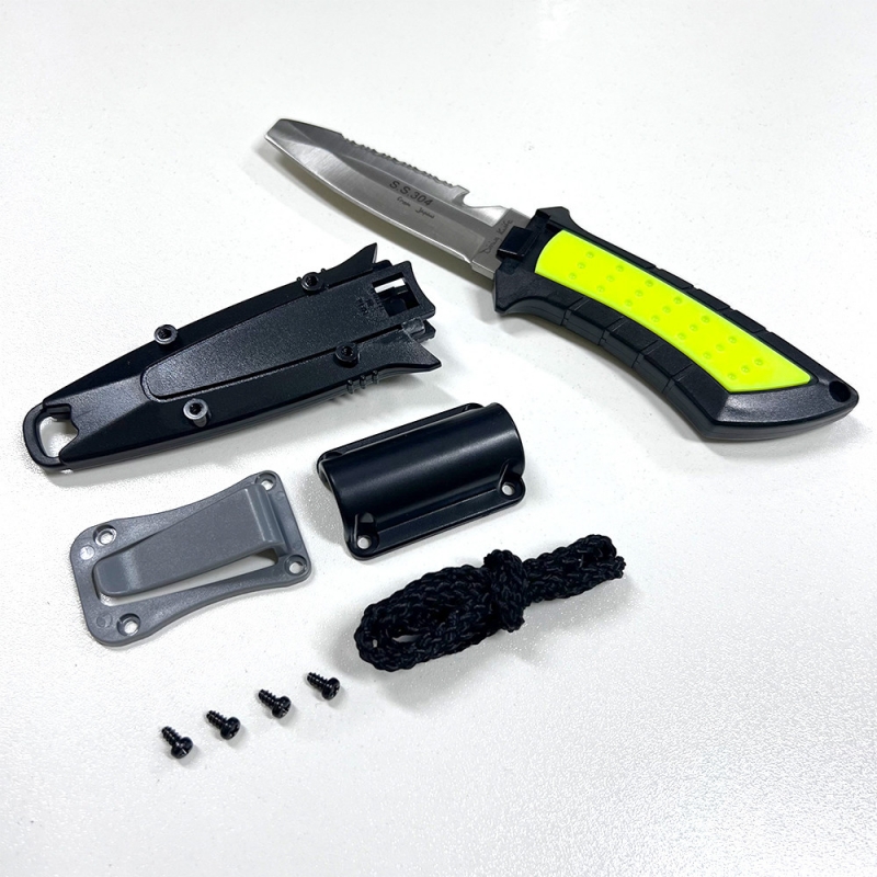 KN48 es una pieza esencial del equipo de seguridad para el buceo, la navegación o situaciones de rescate, al igual que SRE cuchillo de seguridad compacto y portátil, que se puede conectar a su BCD o PFD, para un acceso rápido de emergencia.