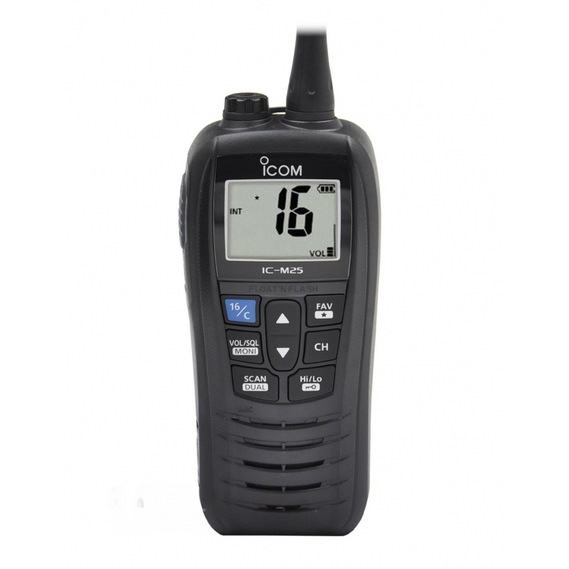 El walkie ICOM DE MARINA IC-M25 EURO VHF es ligero, esbelto y con una carcasa que destaca por ser de las más delgadas del mercado de los transceptores flotantes de marina. Con una gran pantalla LCD que muestra el número de canal en grande para visualizarlo rápidamente.