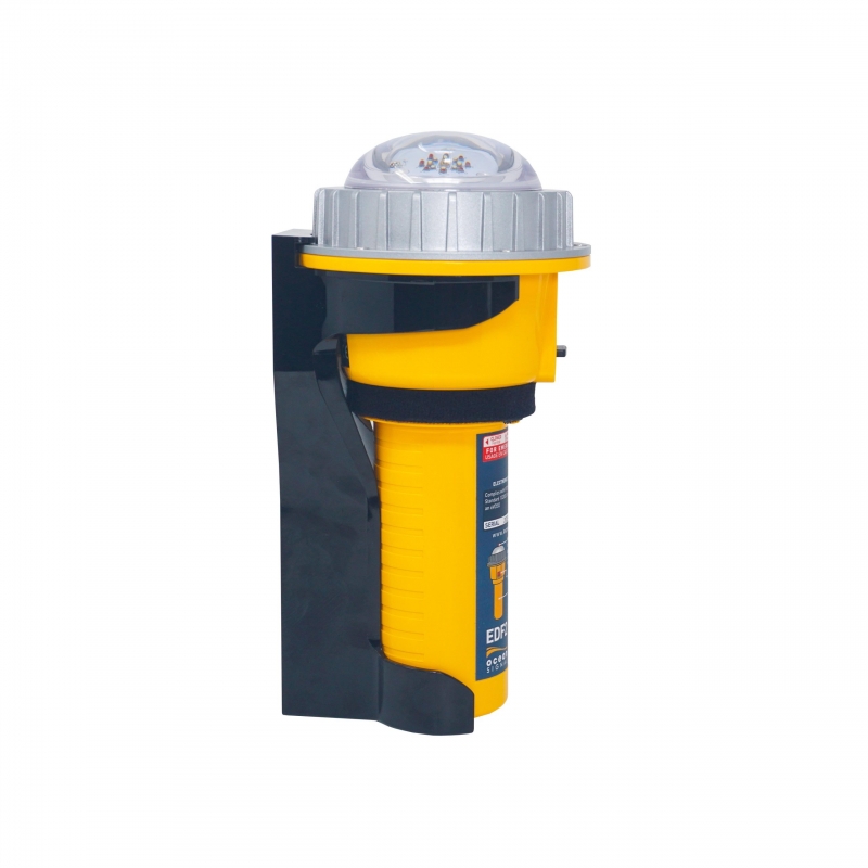 Simultáneamente a los destellos LED rojo-naranja y cian visibles, el componente IR emite el mismo patrón SOS que está optimizado para la visibilidad a través de gafas de visión nocturna (NVG). Quizás lo más impresionante es que, incluso con la gran cantidad de destellos visibles e infrarrojos que se producen, el alto nivel de intensidad de luz producido y el importante rango de distribución de luz (ángulo luminoso ≥ 180°) que se logra, el EDF2 aún alcanza una impresionante vida útil de al menos tres horas (superando los requisitos RTCM en un 50%).