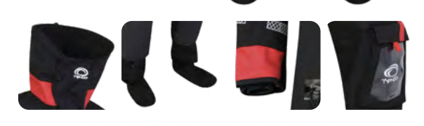 Tiene tejido de 4 capas (quad-ply) que cubre el traje entero, incluso los calcetines, por lo tanto es de mayor calidad, comodidad y durabilidad. Esta se ve incrementada por los sellos de neopreno de Glide skin, su refuerzo de cordura y su cremallera de alta fiabilidad.