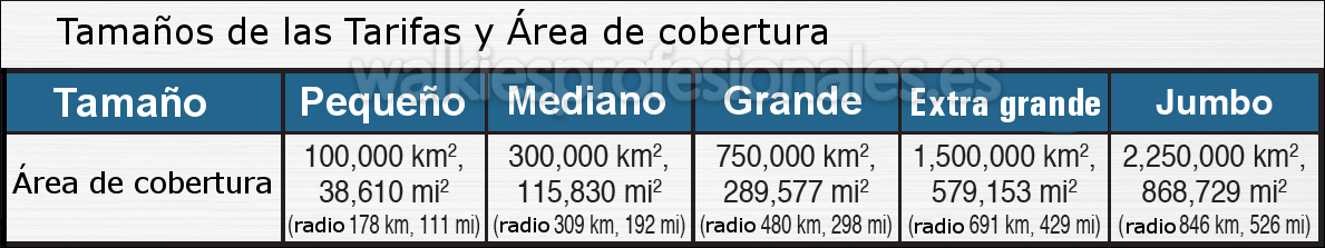Con SATELLITE PTT, puede comunicarse con otras radios IC-SAT100 asignadas al mismo grupo de conversación. El área de cobertura del grupo de conversación se puede seleccionar entre cinco tamaños (ver tabla). Las tarifas de comunicación generalmente se cobran como una tarifa plana a través de un plan mensual, y no hay cargos de llamadas adicionales. Las tarifas de comunicación difieren, dependiendo del área de cobertura y el número del IC-SAT100.