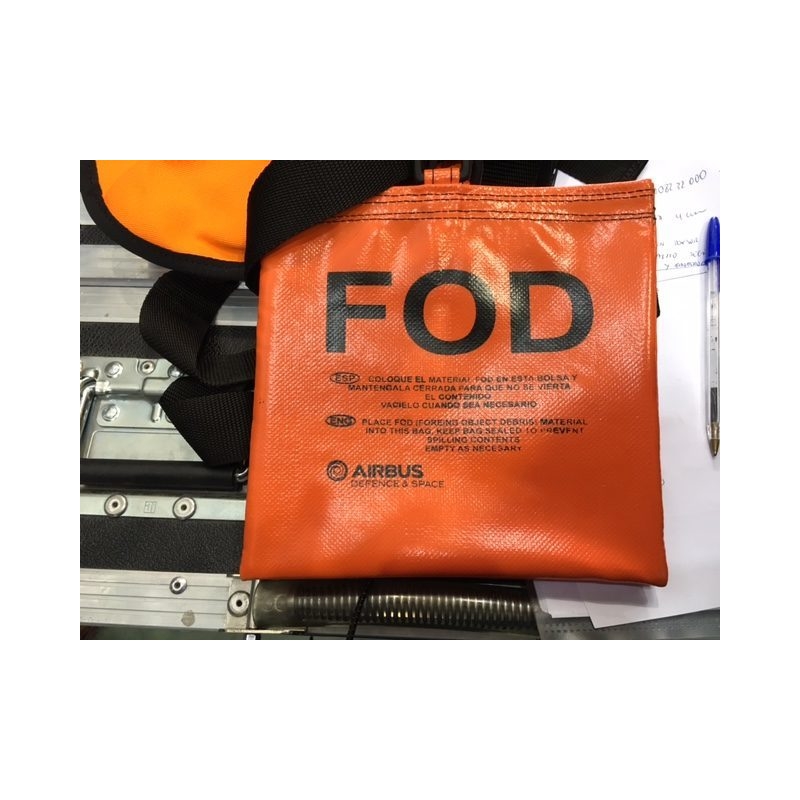 Una Bolsa F.O.D es un accesorio diseñado específicamente para recoger, almacenar y transportar de manera segura cualquier objeto extraño o suelto que se encuentre en áreas críticas dentro de un entorno aeronáutico. Estas bolsas están fabricadas con materiales duraderos que pueden soportar el uso diario y las condiciones exigentes de un entorno de mantenimiento de aeronaves. Su función principal es mantener todas las piezas, herramientas o fragmentos recolectados de manera segura, evitando que caigan accidentalmente en el área de trabajo o en zonas sensibles.