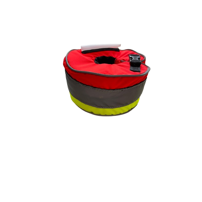 Anillo fabricado en el interior de material flotante de “polifreno de células cerradas”, ranurado en el diámetro interno para alojar el tope del gancho del cabrestante. Exterior en material de alta visibilidad (amarillo y naranja).