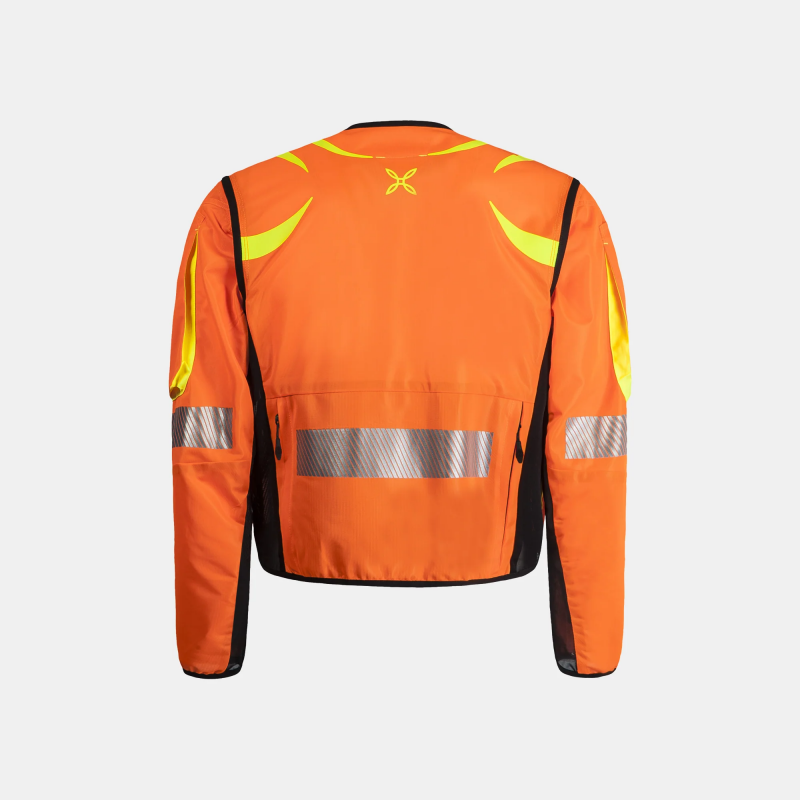 Confeccionada en poliéster resistente, esta chaqueta unisex de alta visibilidad presenta detalles de malla en contraste y bandas reflectantes segmentadas para mayor seguridad en la montaña.