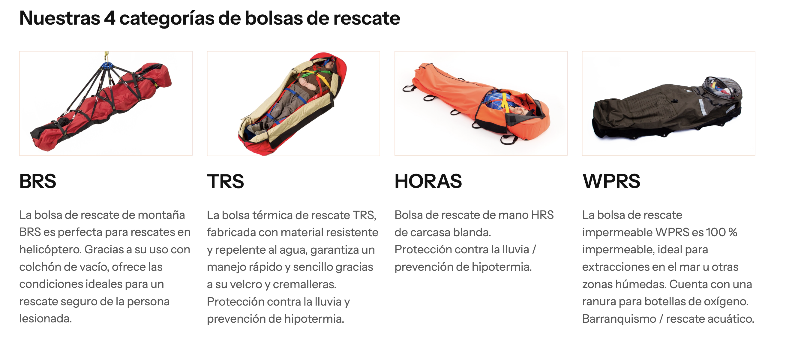 La bolsa térmica de rescate TRS, fabricada con material resistente y repelente al agua, garantiza un manejo rápido y sencillo gracias a su velcro y cremalleras.