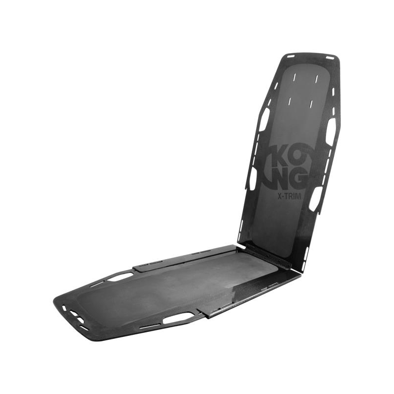 Revolucionaria tabla espinal de fibra de carbono, plegable en dos. Preparación para el uso e inmovilización muy rápidas a través de dos listones correderos y solidarios.