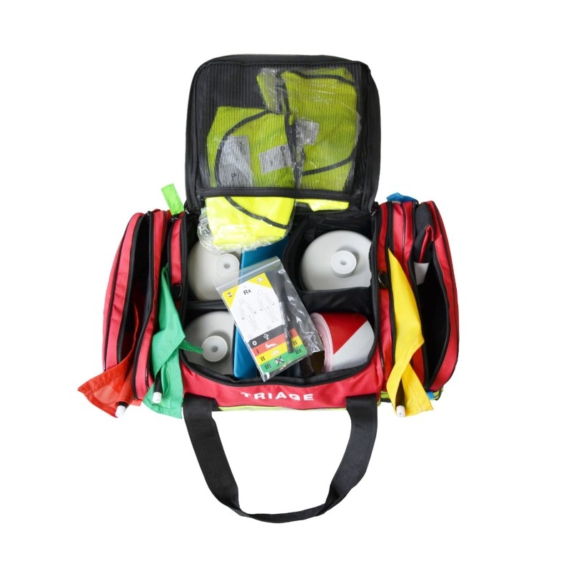 Completo kit de triage para situaciones de catástrofe que incluye todo lo necesario para la evaluación rápida y eficiente de múltiples víctimas, contiene materiales de alta calidad y resistencia para garantizar su durabilidad y eficacia en situaciones de emergencia.