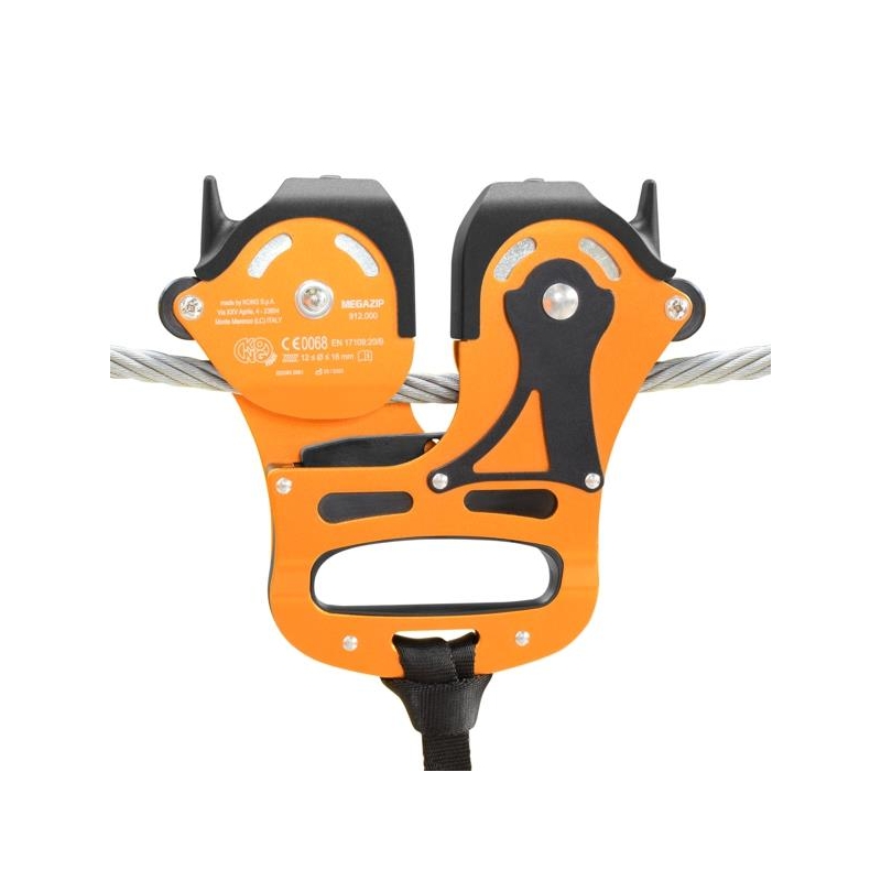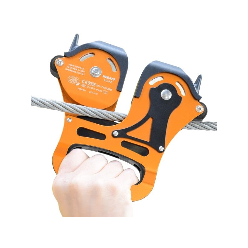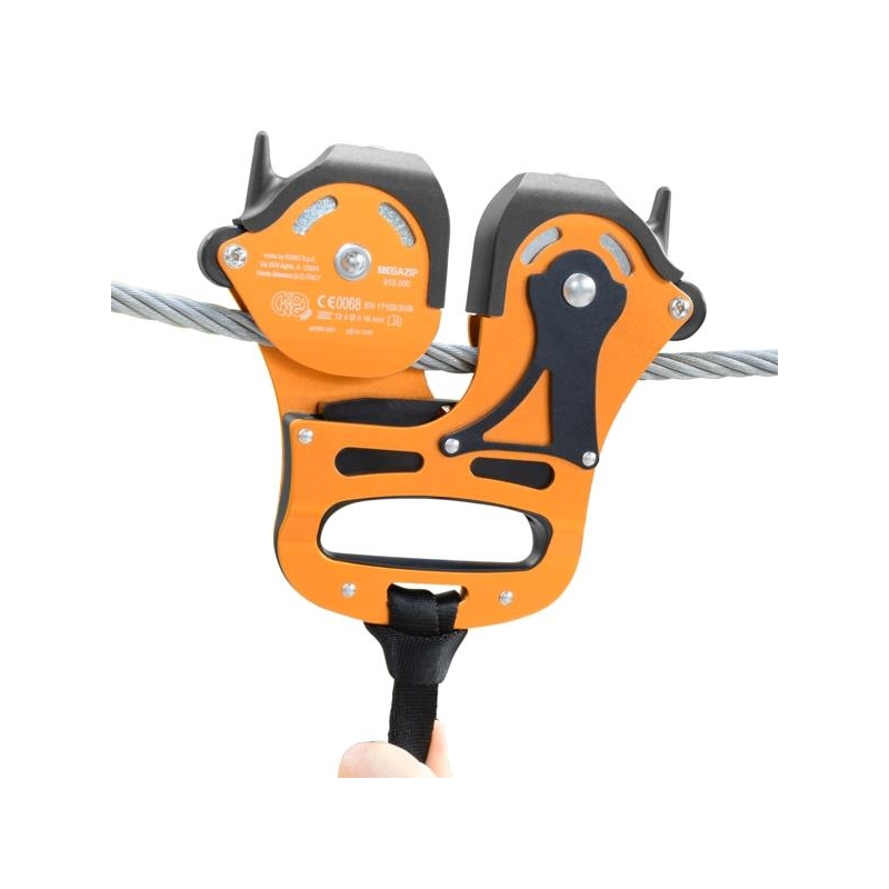 Polea doble para tirolinas largas y rápidas (más de 300 m).
