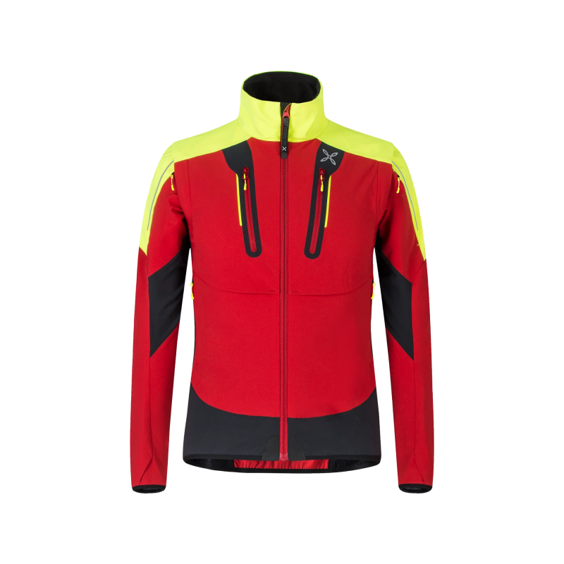 Los paneles elásticos reforzados aumentan la durabilidad y la movilidad. Cortavientos, repelente al agua y transpirable, la chaqueta también incluye detalles reflectantes para mayor visibilidad.