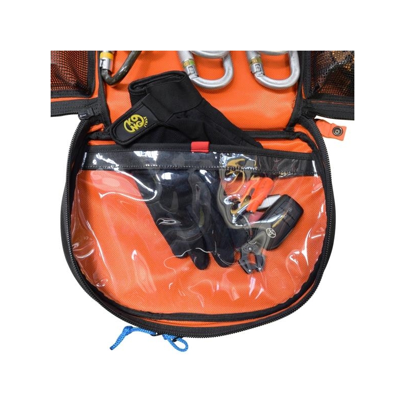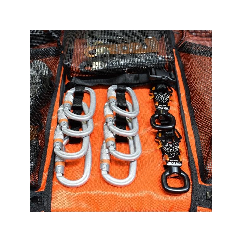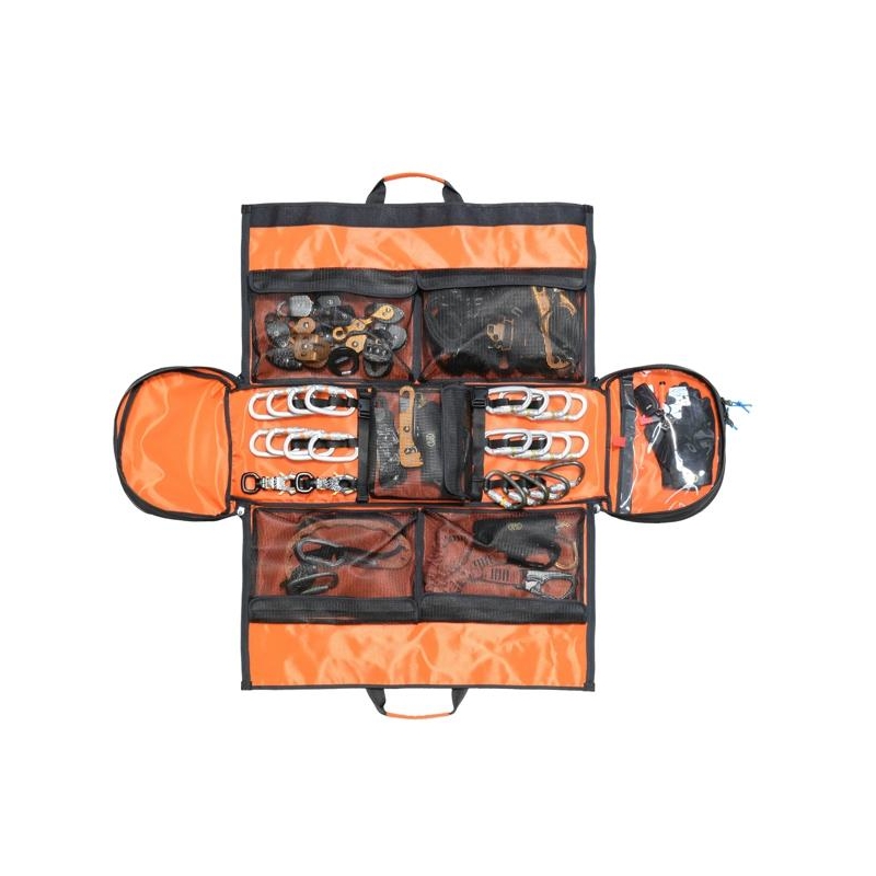 Bolsa porta material, equipada con bolsillos y compartimentos para colocar todo el equipo de manera práctica y eficiente.