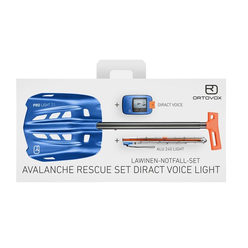 El kit está compuesto por el Arva DIRACT VOICE, receptor de avalancha intuitivo con navegación por voz, la sonda ALU 240 LIGHT PROBE de aluminio, ligero para avalanchas y la pala PRO LIGHT de aluminio, extremadamente ligera y eficaz con mango ergonómico.