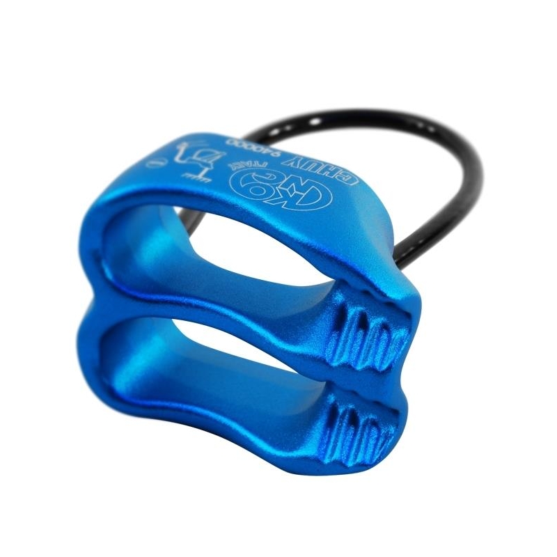 Muy ligero, tiene la ventaja de poder variar la capacidad de frenado gracias a los cuellos con forma de “V” para modular el esfuerzo del usuario en función de su peso, de la cuerda utilizada y de todos los factores que modifican el roce y, por consiguiente, el frenado. Fluidez de funcionamiento, excelente frenada y look atractivo. Recomendamos su uso en combinación con un conector HMS con seguro de rosca.