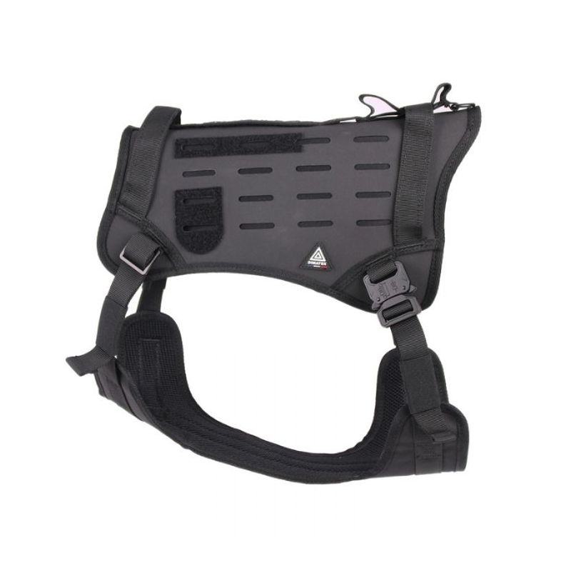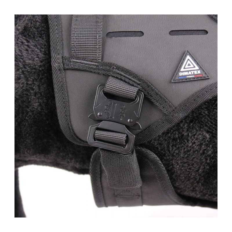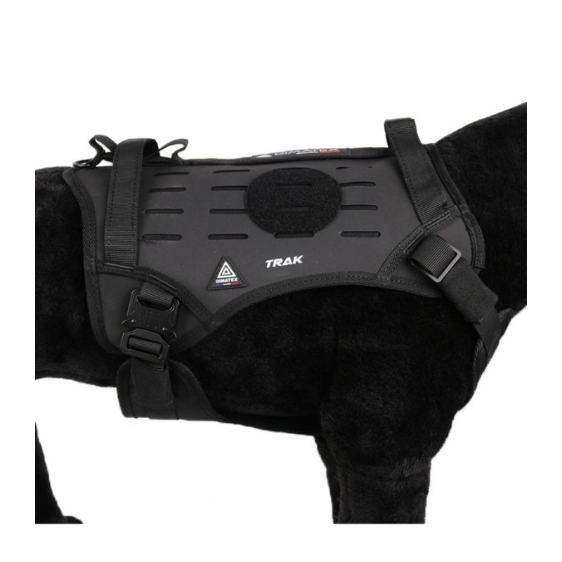 Arnés para perros de Rescate, Policiales y de Asalto Dimatex con hebilla de liberación rápida estilo Cobra. La sección trasera está equipada con presillas MOLLE cortadas con láser.