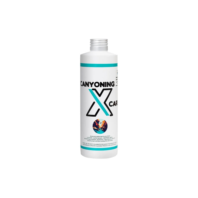 Simplemente diluye 10 ml de CanyoningXcare en 1 litro de agua, deja actuar durante 5 minutos y seca al aire sin enjuagar.