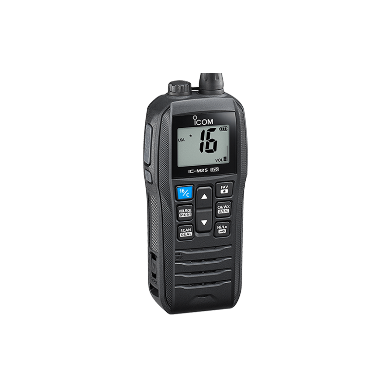 El nuevo Walkie Icom de Marina IC-M25EURO EVO VHF es una versión mejorada del IC-M25EURO. Entre sus funciones y características, destaca su flotabilidad en horizontal con tecnología Float n’ Flash, la función AquaQuake para expulsar agua del altavoz, y su diseño compacto y ligero. Está disponible en dos colores: negro y azul.