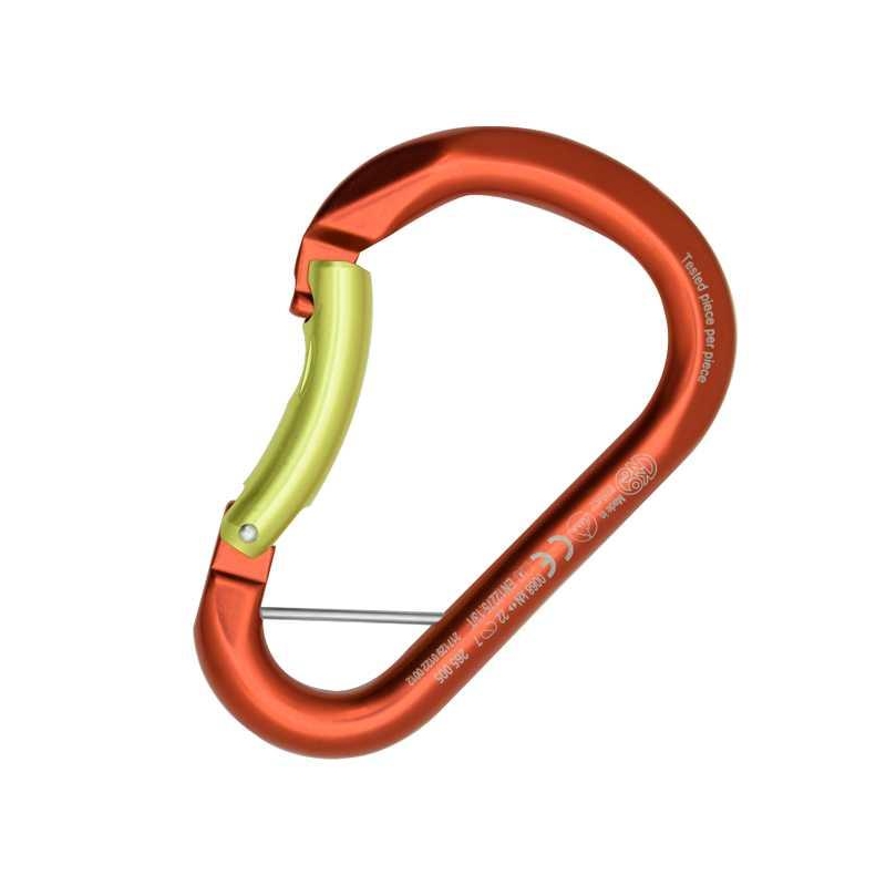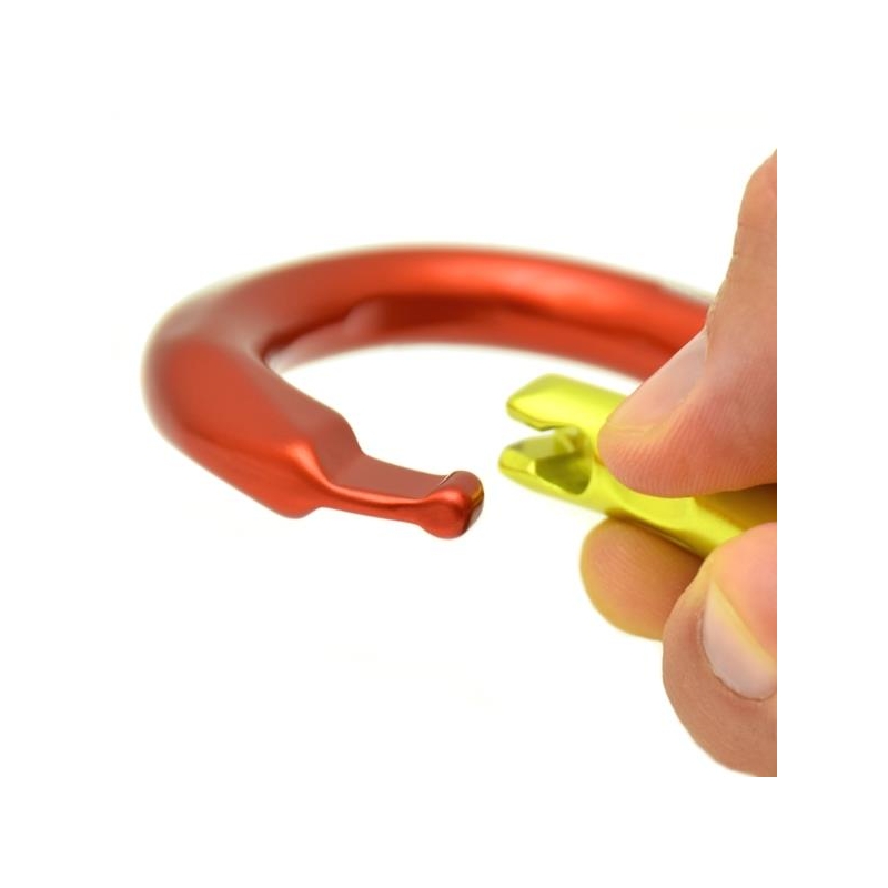 Mosquetón de aluminio con gatillo curvo y amplia apertura.