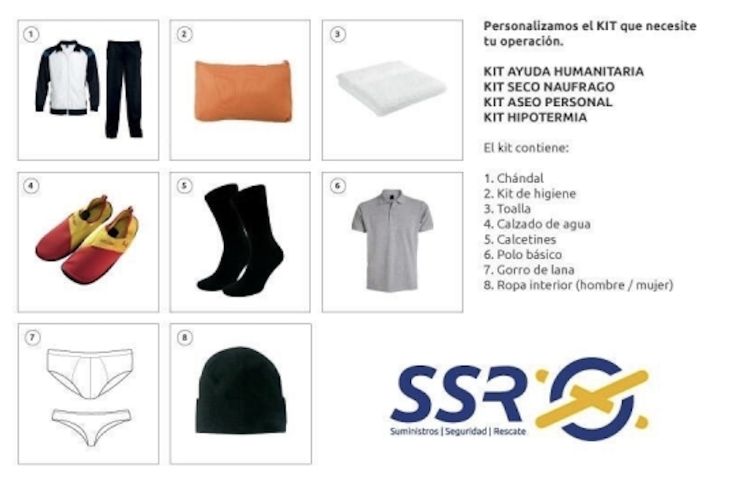 Zapatos, ropa de abrigo, ropa interior, bolsa higiene personal, kit adaptaos ambos sexos…