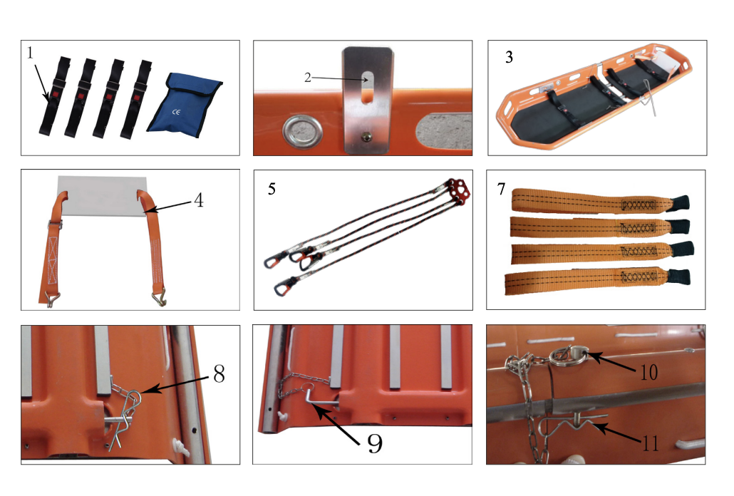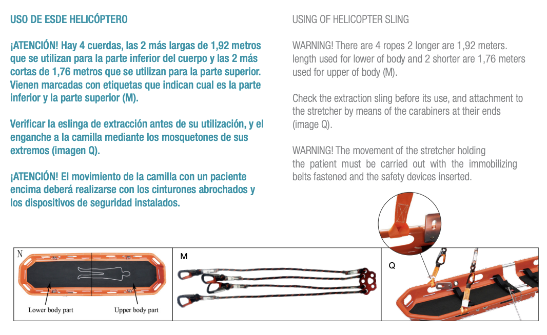 Camilla profesional destinada a rescates para uso profesional. Incluye cinturones de seguridad, arneses y elementos específicos para extracción de cualquier índole.