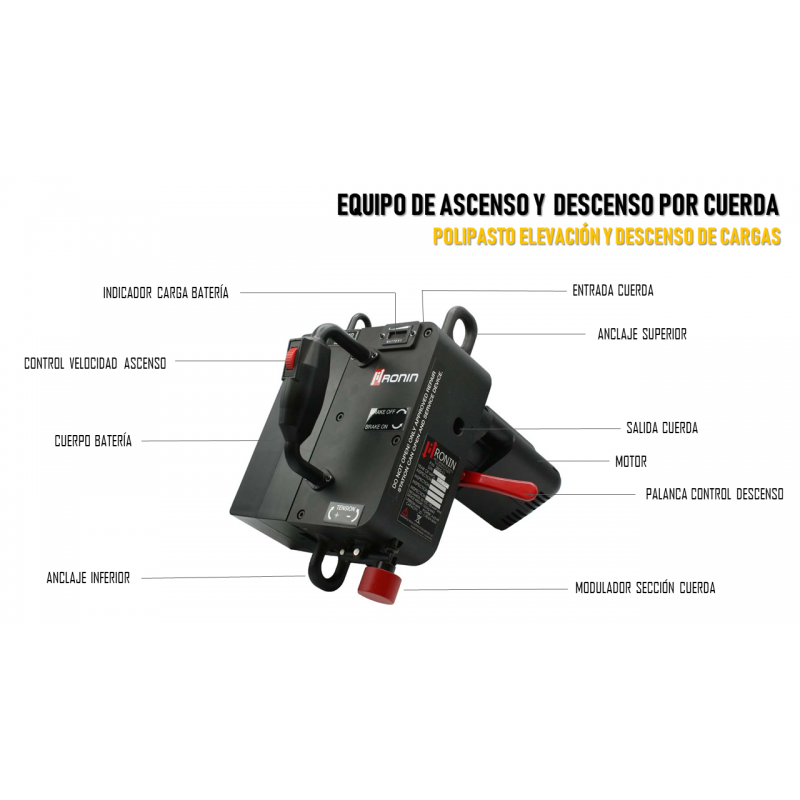El equipo de trabajo RONIN está diseñado para ser utilizado como polipasto para subir o bajar cargas con un peso no superior a los 181 kilos.