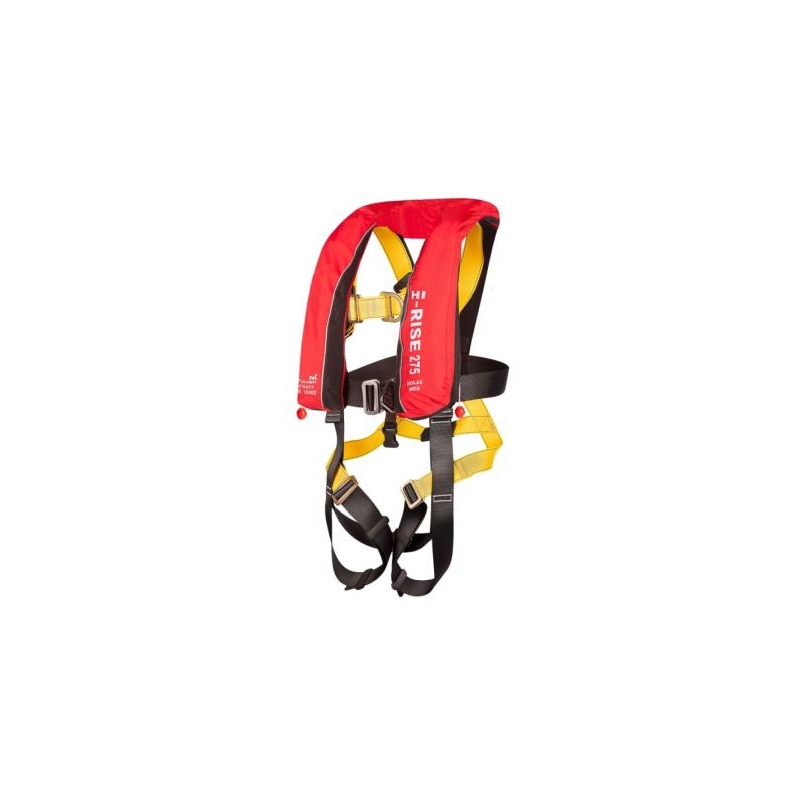 El chaleco salvavidas Hi-Rise 275 SOLAS también está disponible con la incorporación de un arnés anticaídas. El chaleco salvavidas tiene un sistema de sujeción que se puede adaptar fácilmente a la mayoría de los arneses anticaídas.