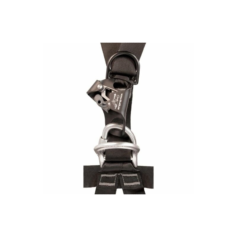 Respecto al transporte del material necesario, este arnés cuenta con cuatro anillas portamaterial con capacidad de hasta 15 kg cada una, cintas en el cinturón que soportan hasta 35 kg y ranuras compatibles con los portaherramientas Porter. Además, incorpora también una cinta elástica en el tirante izquierdo para sujetar otro tipo de equipo, por ejemplo el transmisor.
