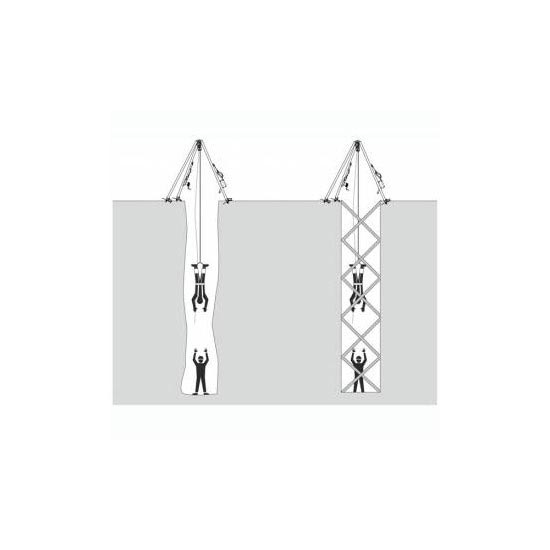 Arnés especial Mike con tobilleras que permite rápel con la cabeza hacia abajo en espacios estrechos y túneles (pozos, silos, etc ...). La cinta de alta resistencia asegura la seguridad y la máxima fiabilidad.